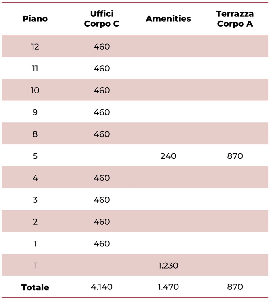 Gli uffici, con superfici da 460 mq fino a 4.000 mq, offrono spazi ampi e personalizzabili. Ogni ambiente è progettato per garantire funzionalità e comfort, favorendo sia il lavoro individuale che le riunioni più riservate. Completano l’offerta sale meeting prenotabili e uno spazio eventi con terrazza-giardino.